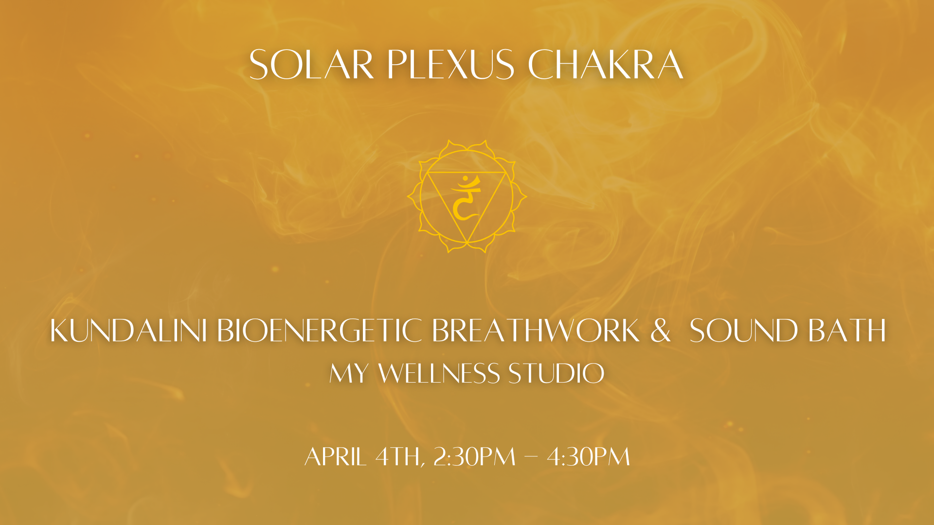 This workshop will focus on the solar plexus chakra to bring you back to a state of feeling confident and empowered. The solar plexus chakra governs the fire element within you. It is your strength, ego, willpower and inner power. The Sanskrit name for Solar Plexus, Manipura, means “place of the shining gem.” Working with the fire element and balancing the solar plexus chakra will help you to build a strong sense of self and personal power.